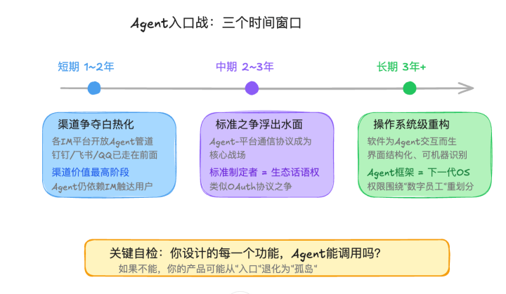 传统敬爱上的”进口”,是用户主动掀开的阿谁App。但在Agent期间,用户可能不再主动掀开任何具体的App——他们仅仅对着Agent说”帮我处理一下今天的音讯”,然后Agent自动调用微信、邮件、日期、文档。