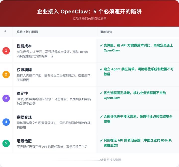 八、企业接入OpenClaw前,必须避让的5个陷坑