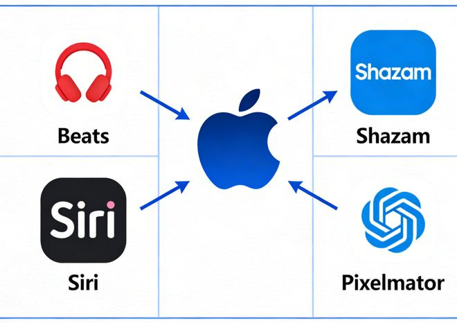 苹果收购后很少保留原品牌(Beats是少数例外)。大广大情况下,被收购的时刻会被拆解、重组,最终成为某个苹果功能的一部分。Siri保留了名字已是薄情,更多时候是「事了荡袖去,深存身与名」。