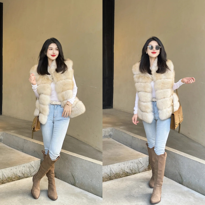 马甲亦然春季打造好气质的必备神器,比如外相马甲,叠穿白色真挚衫打底,贵气透澈又超等显缓和,下半身搭配浅蓝色牛仔铅笔裤,修饰腿型,再踩一对卡其色麂皮绒过膝长靴,好像打造大长腿女生穿搭。