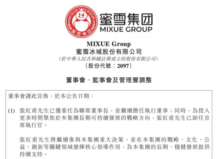 新任CEO由35岁的原首席财务官(CFO)张渊接任,变动格式已实施结束。张渊于2023年加入蜜雪冰城,此前曾在好意思银证券、高瓴投资等多家金融机构任职,具备丰富的财务及老本运作教育。