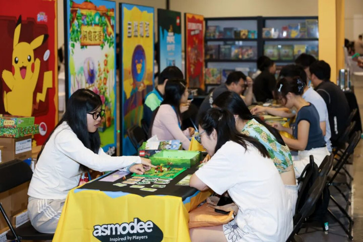 东说念主们在2025年中国海外动漫游戏展览会现场体验卡牌游戏
