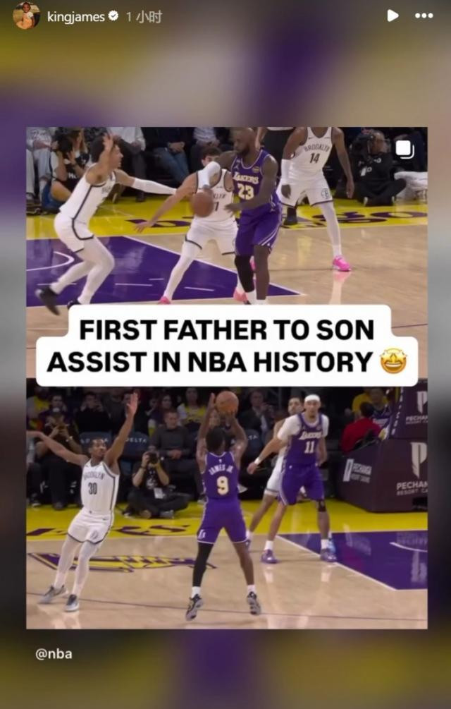 小九体育 父子助攻创造历史! 詹姆斯振奋转发助攻布朗尼已而