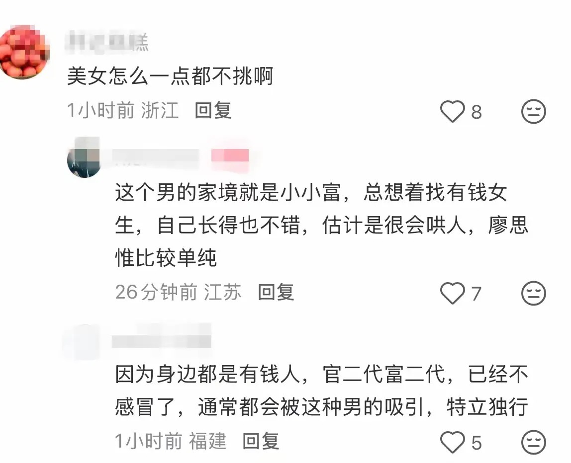 廖想维的男一又友,势必是不适方丈眷择偶不雅的,父母退却的概率也就比拟大。再勾搭她的坐褥环境,粗略率是那段本事家里断了她的经济来源。