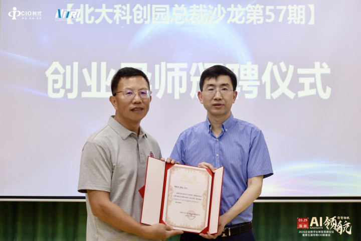 为深化产学研协同与创新创业东谈主才培养,北大科创园总裁、产业技艺预计院院长邓仲明现场为 CIO 时间创举东谈主兼预计院院长姚乐博士颁发创业导师聘书,发达遴聘其担任创业导师,共促产业数智化创新发展。